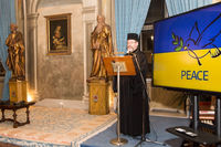 Під час зустрічі було продемонстровано відеоматеріали із священнослужителями російської православної церкви, котрі стріляють із гранатомета «проти НАТО» та навчають, як потрібно молитися під час заряджання автомата.