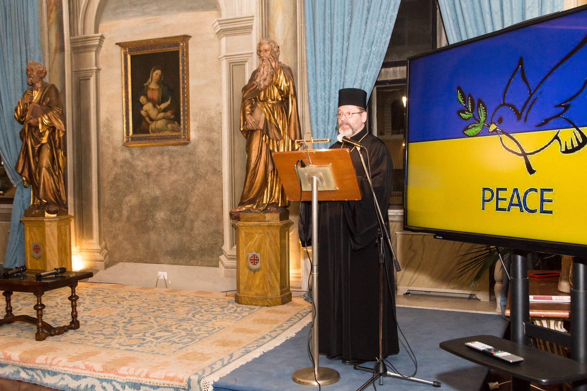 На запитання про перспективу миру для України Блаженніший Святослав відповів, що «це відкрите запитання», але для «справедливого миру потрібно встановити правду про все, що росія зробила в Україні, справедливість, а найголовніше — покаяння за вчинені злочини».