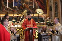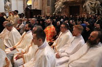 З Главою Церкви співслужили єпископи УГКЦ: владика Борис Ґудзяк, архиєпископ і митрополит Філадельфійський, владика Діонісій Ляхович, апостольський екзарх в Італії, владика Михайло Бубній, екзарх Одеський, владика Богдан Дзюрах, апостольський екзарх у Німеччині та Скандинавії, владика Іриней Білик, канонік Папської базиліки Санта Марія Маджоре, а також владика Юрій Джуджар зі Сербії і владика Ґінтарас Ґрушас, архиєпископ Вільнюса, де святий Йосафат звершував у монастирі своє служіння. Участь у молитві взяли монашество, семінаристи та миряни УГКЦ.