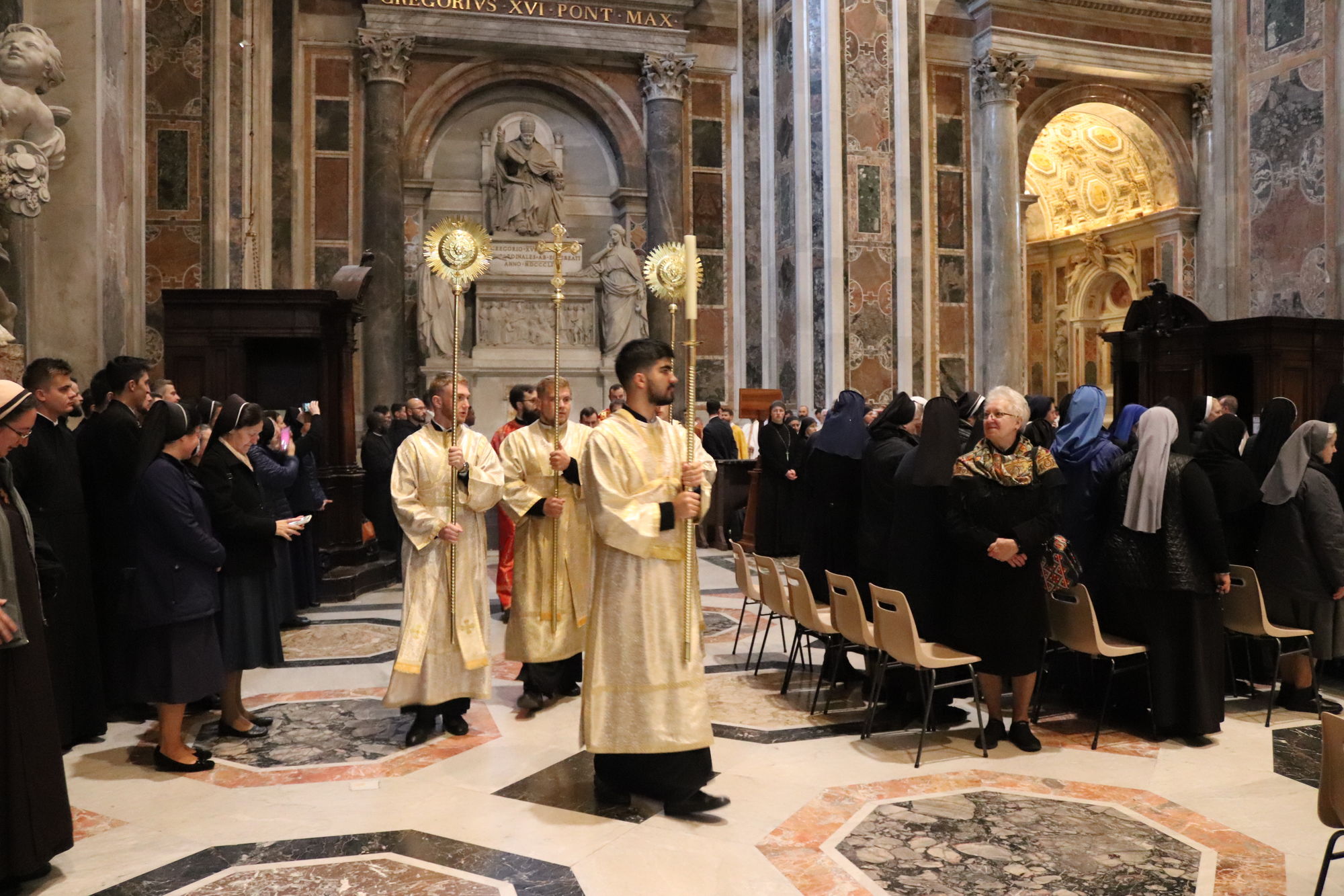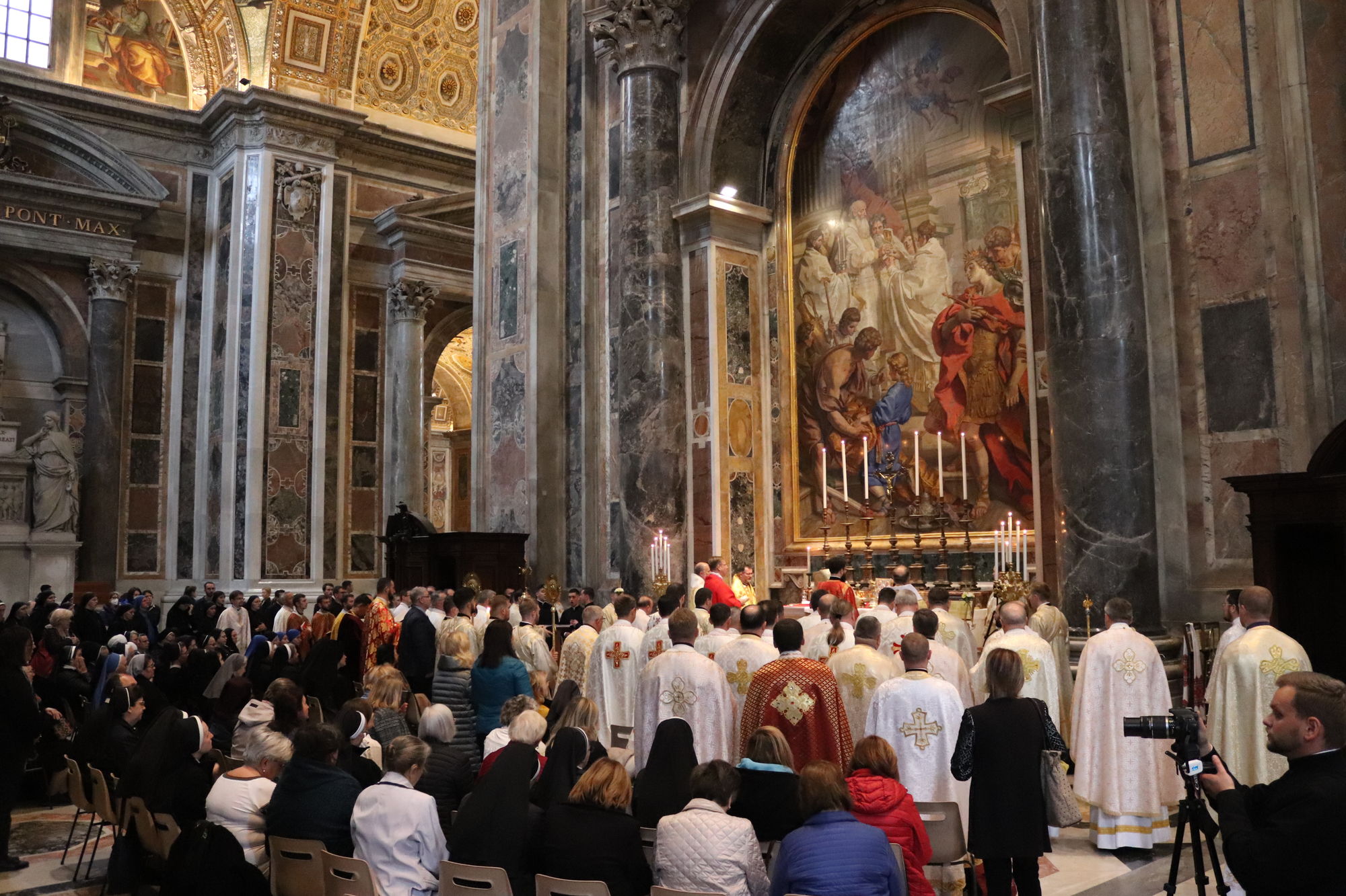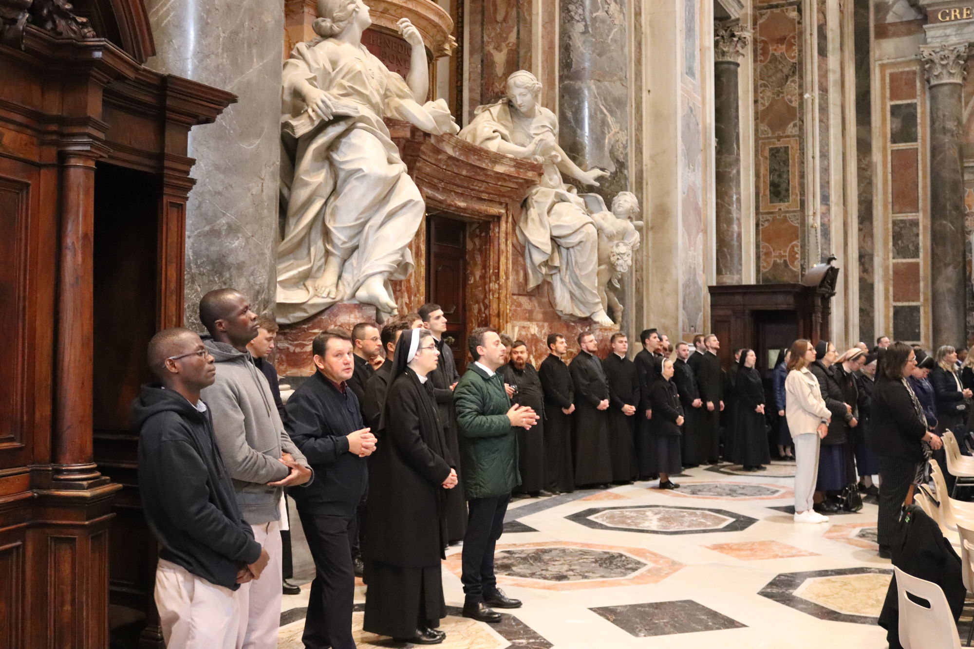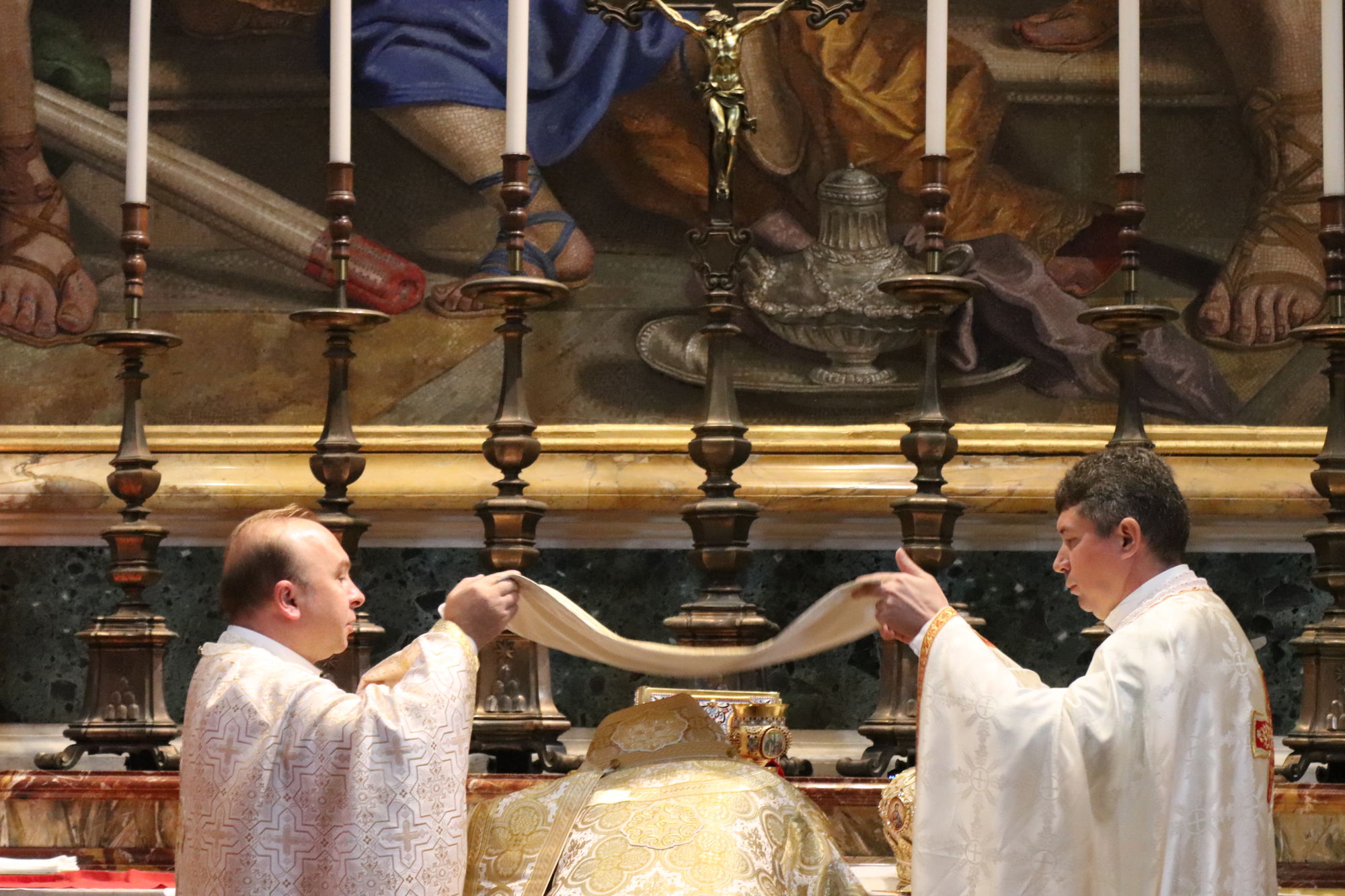 З Главою Церкви співслужили єпископи УГКЦ: владика Борис Ґудзяк, архиєпископ і митрополит Філадельфійський, владика Діонісій Ляхович, апостольський екзарх в Італії, владика Михайло Бубній, екзарх Одеський, владика Богдан Дзюрах, апостольський екзарх у Німеччині та Скандинавії, владика Іриней Білик, канонік Папської базиліки Санта Марія Маджоре, а також владика Юрій Джуджар зі Сербії і владика Ґінтарас Ґрушас, архиєпископ Вільнюса, де святий Йосафат звершував у монастирі своє служіння. Участь у молитві взяли монашество, семінаристи та миряни УГКЦ.