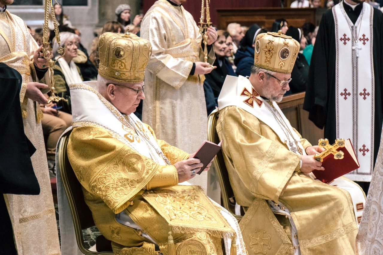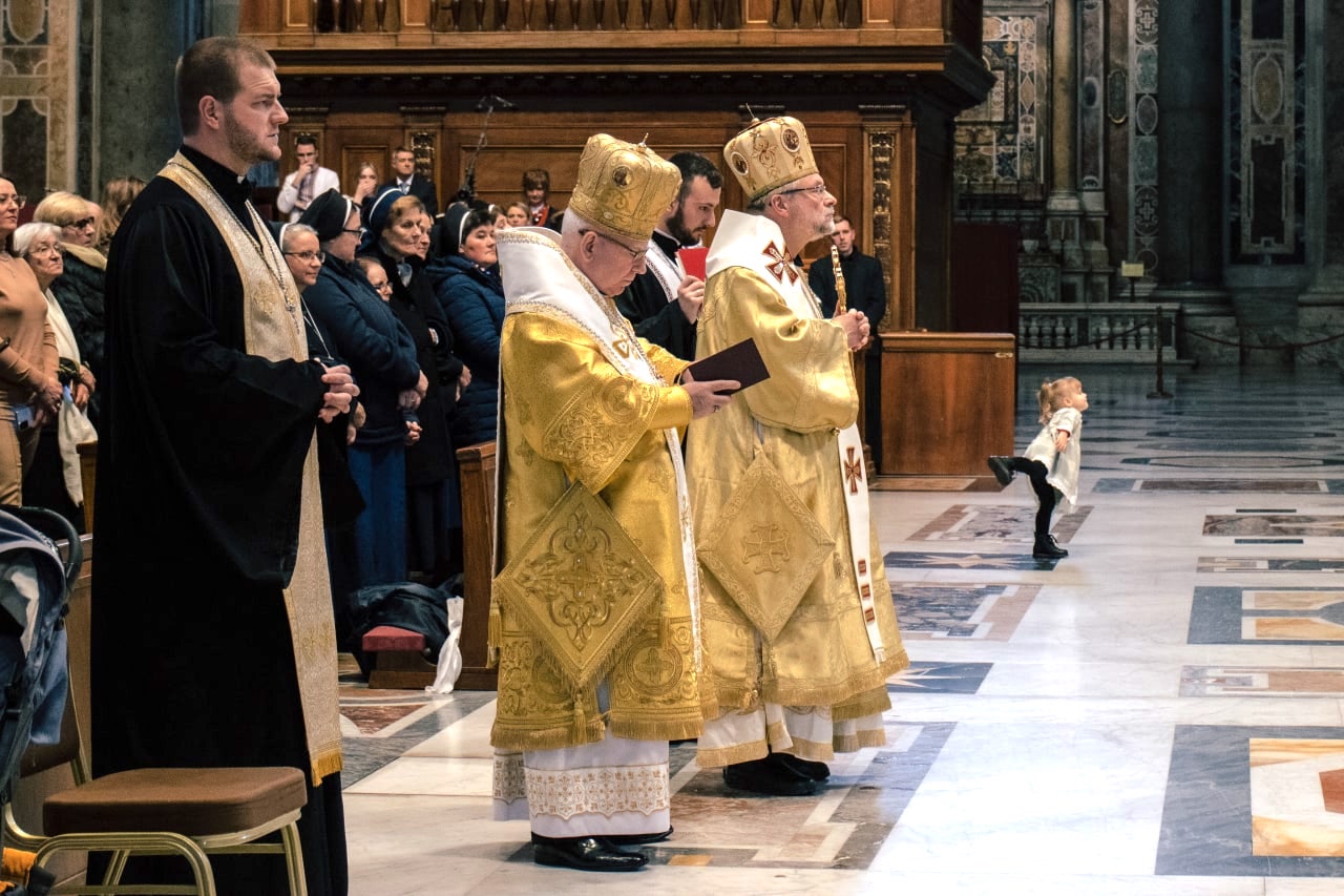 Архиєрейську Божественну Літургію на Катедральному Вівтарі (Altare della Сàtedra) очолив преосвященний Владика Гліб Лончина, Апостольський адміністратор єпархії святого Володимира Великого в Парижі для українців візантійського обряду у Франції, країнах Бенілюксу та Швейцарії, у співслужінні із Владикою Іринеєм Біликом, єпископом-емеритом, каноніком Папської базиліки Санта Марія Маджоре. Єпископам співслужили: владика-номінант Микола Семенишин, майбутній єпископ-помічник Івано-Франківської архиєпархії УГКЦ, о. д-р Теодосій Р. Грень, ЧСВВ, протосинкел Апостольського екзархату, о. Роберт Лисейко, протоархимандрит чину отців василіян, о. Луїс Касіян, ЧСВВ, ректор Папської української колегії святого Йосафата, та екзархальні священники.