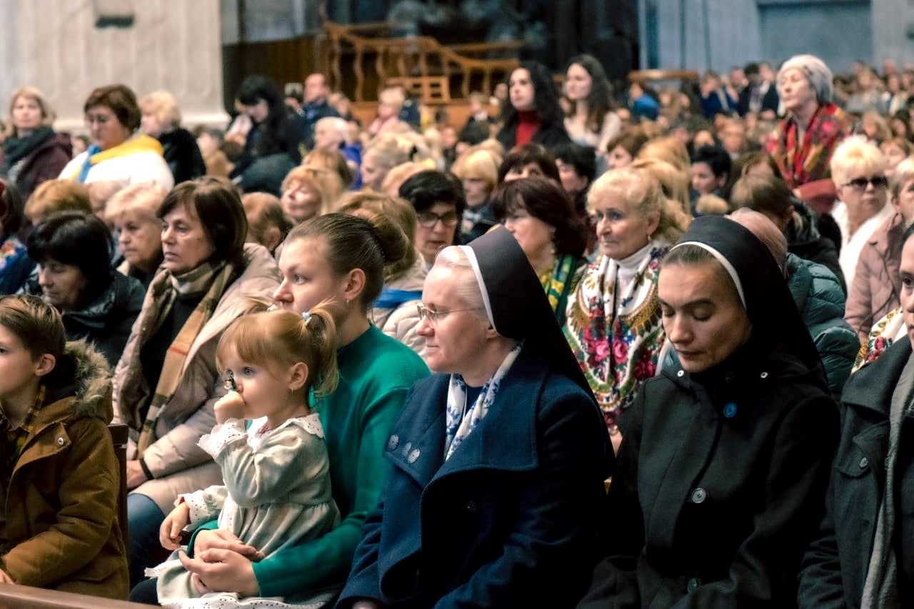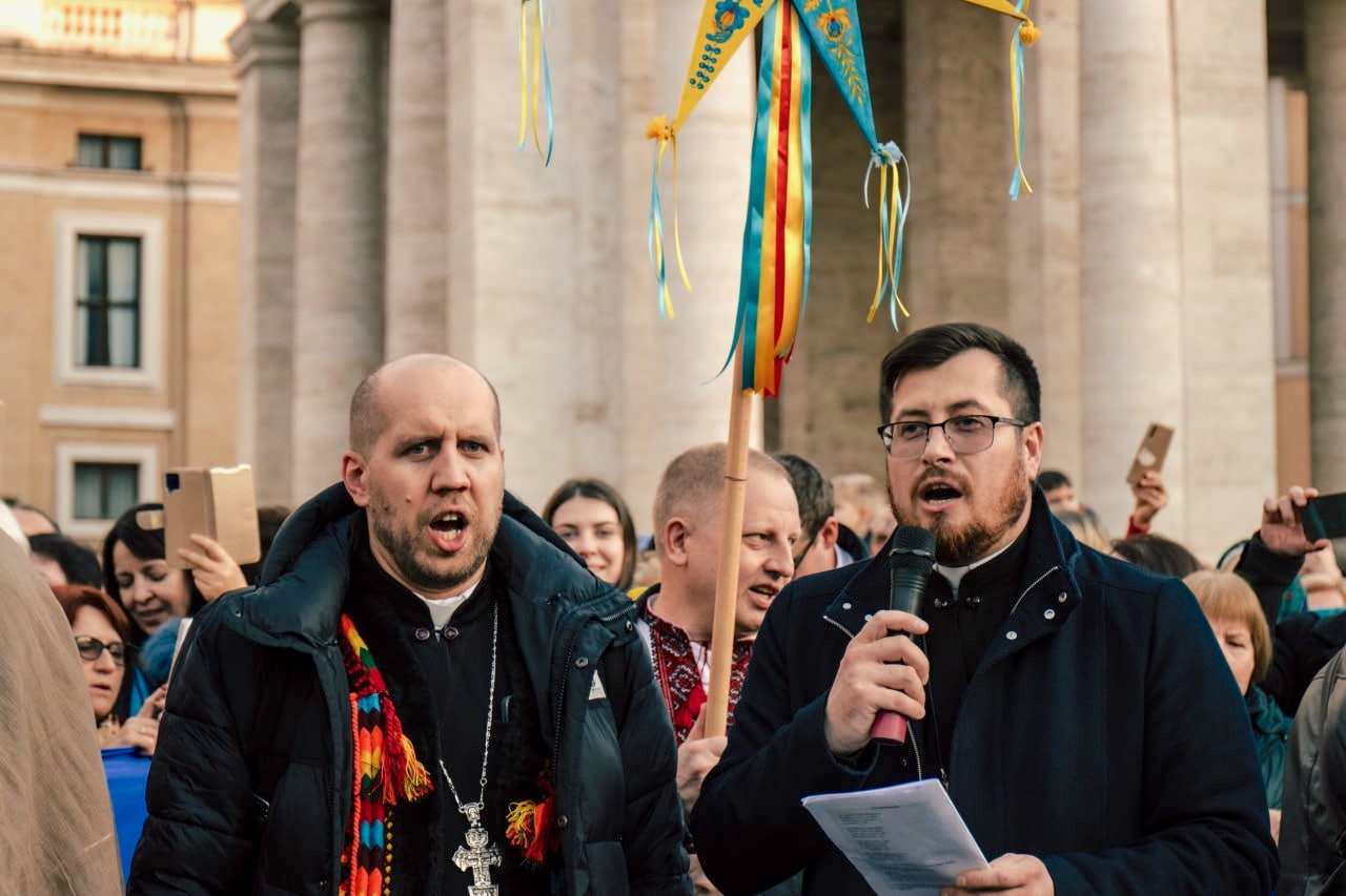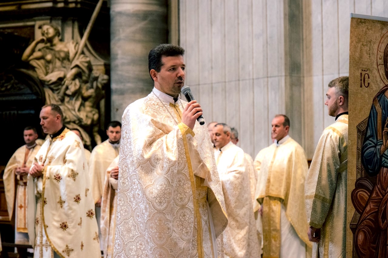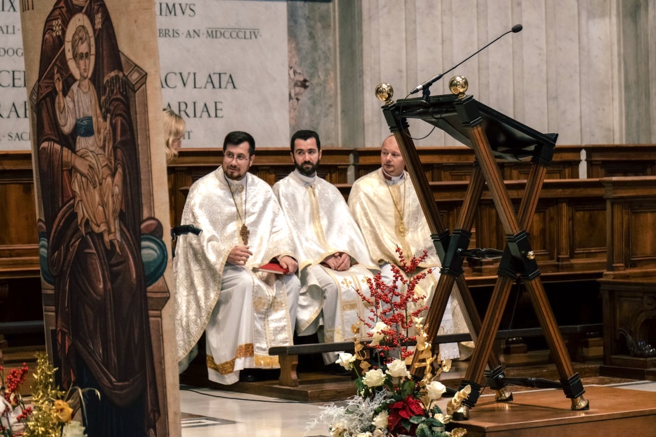 Протосинкел екзархату, від імені владики Діонісія Ляховича, апостольського екзарха, привітав вірних на цій прощі й подякував за те, що прибули до Вічного міста, аби разом пожертвувати свою молитву за мир в Україні. «Бо Різдво — це народження Князя миру, Господь Бог приходить, щоби розділити з людиною радість і сумні моменти життя; Він є справжнім миром, який сьогодні приходить, аби народитися в наших серцях, незважаючи на жодні труднощі. Піднесімо сьогодні нашу щиру молитву за те, щоби Господь обдарував нас усіх тим великим даром, за який ми його так гаряче просимо — даром миру!», — закликав він молільників.